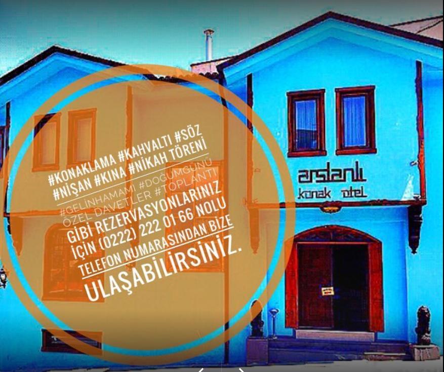 Şehrin Tarihi sloganıyla yola çıkan Arslanlı Konak Otel Dünya Kültürü Mirası Odunpazarı evlerinin tam merkezinde. Tarihin dokusu her bir köşesinde işlenmiş Arslanlı Konağı, sizi dinginliği, huzuru ve keşfetme arzusuyla saracak. Türk hamamın rahatlığı, Saunanın modern yapısı, Restaurantın damakta bırakan hoş tadını ve konaklarken rahatlığın hazzını bulacaksınız.